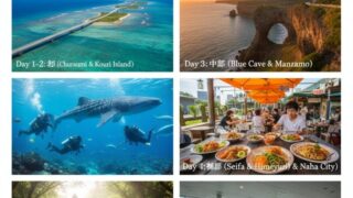 沖縄旅行 沖縄旅行 4泊5日モデルコースと費用構成、北部から南部までレンタカーで巡る観光プラン 沖縄旅行を計画する際、「4泊5日ならどんなモデルコースが理想的?」と悩む方も多いのではないでしょうか。特にレンタカーを利用すると、北部の美ら海水族館から南部の斎場御嶽まで効率よく観光が可能です。本記事では、沖縄旅行 4泊5日の北部から南部の... 2025.09.21 沖縄旅行